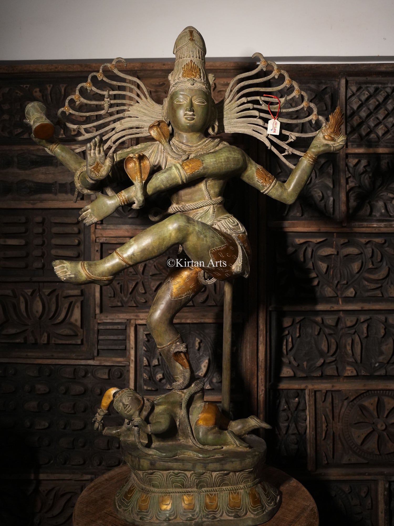 67" Large Lord Shiva Sculpture | Indonesian Bronze | Wooden Base | 8 Hands