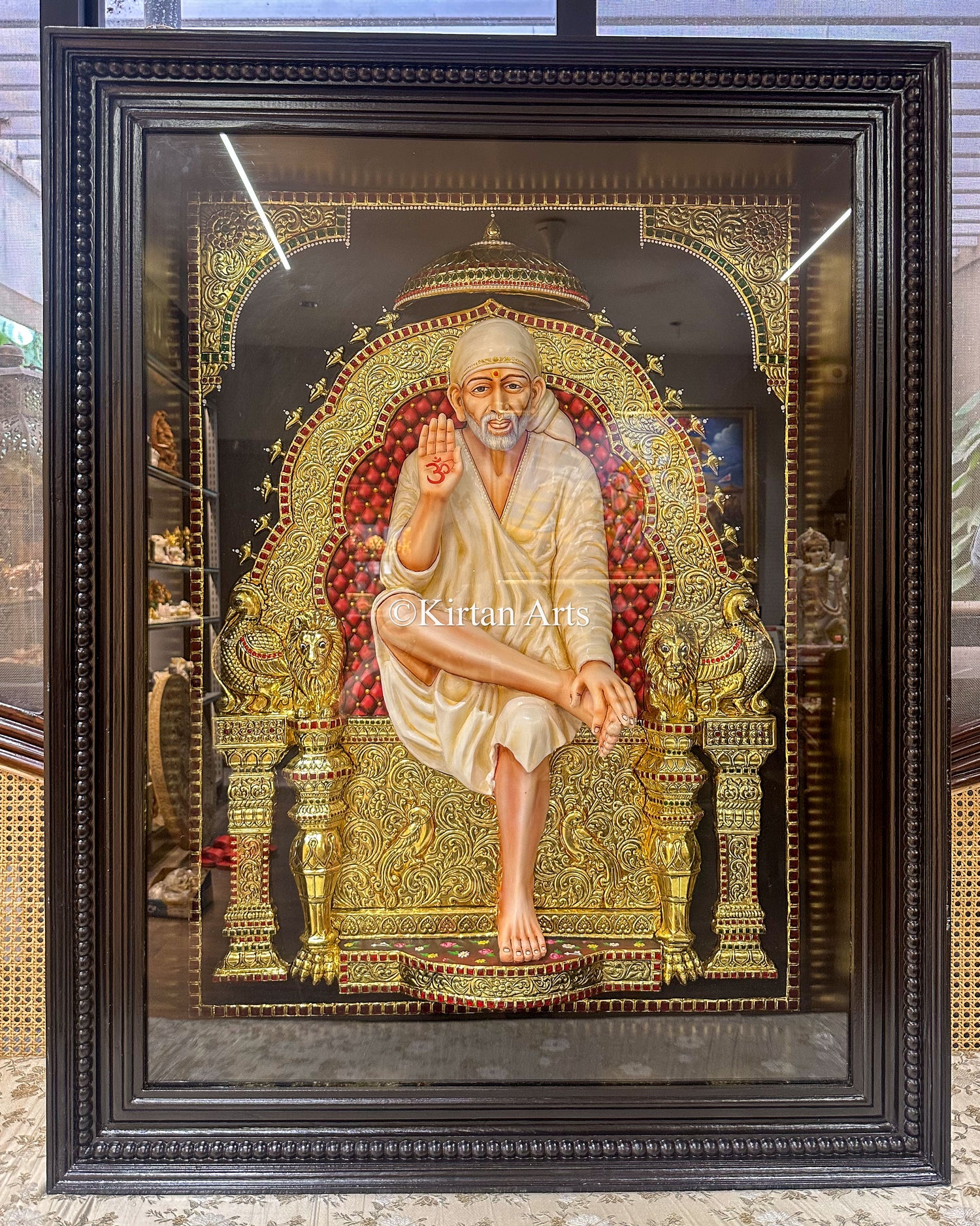 Shirdi Saibaba Tanjore Painting | 3D Embossed | 46"x36" | 22k Gold Leaf
