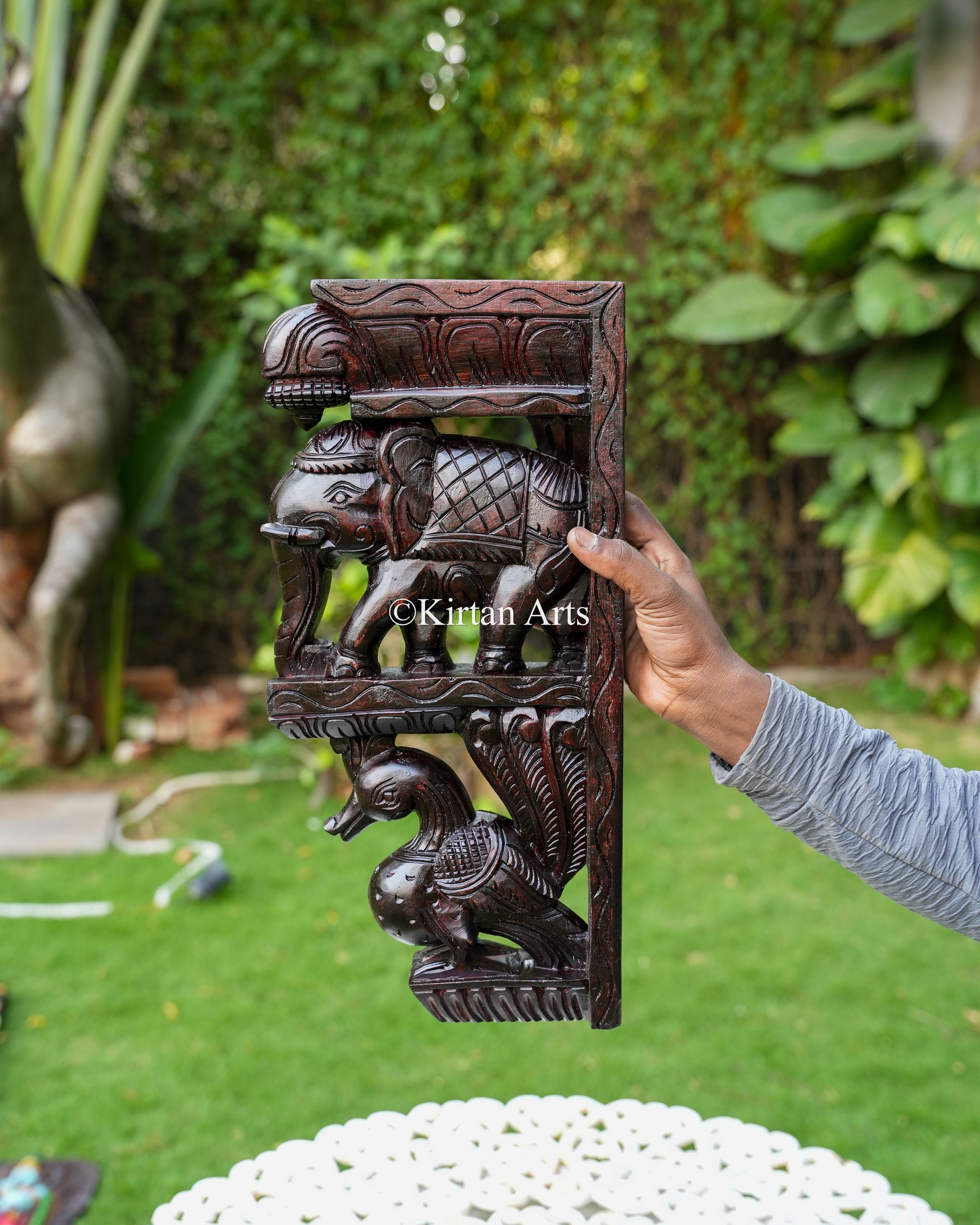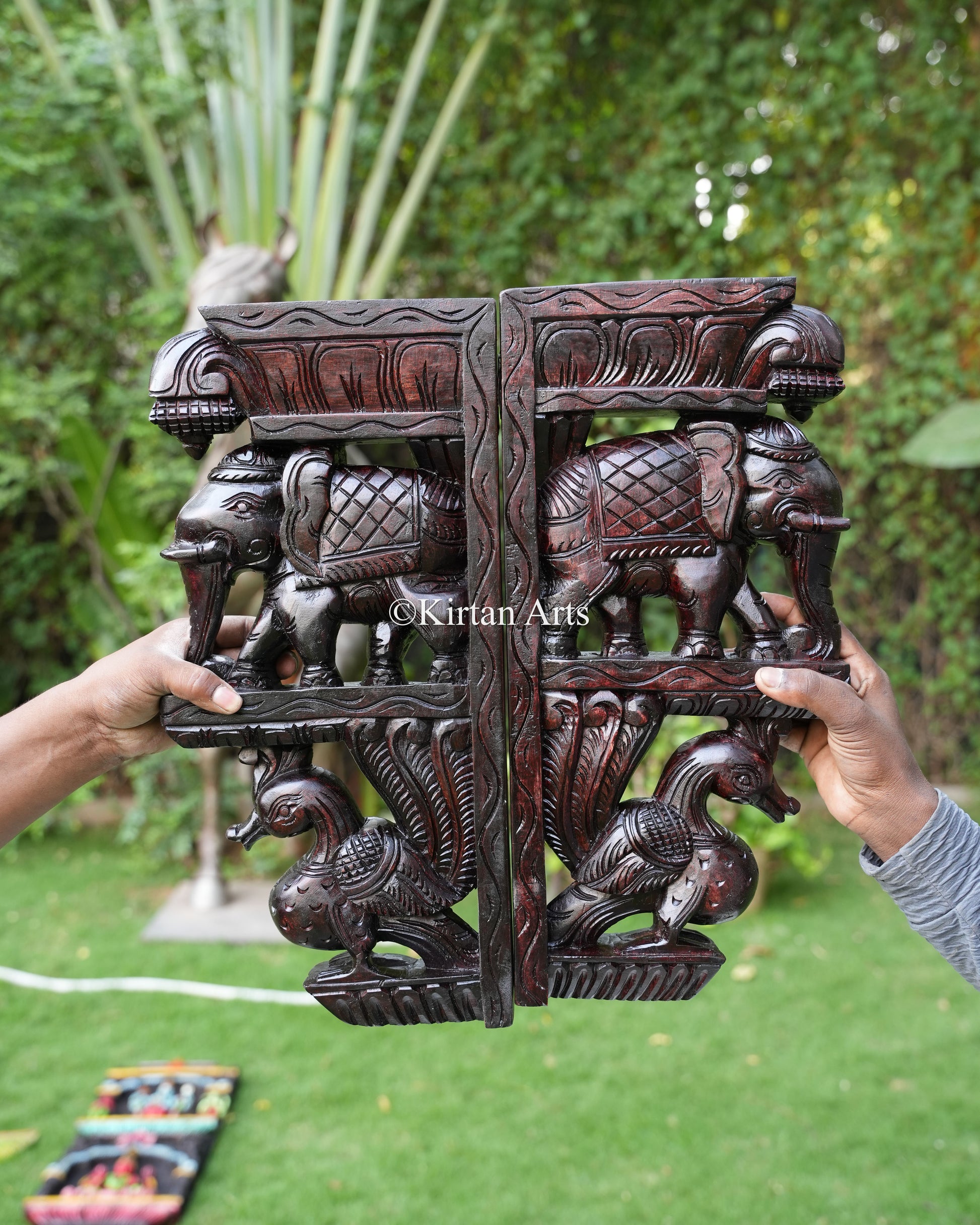 18" Elephant Annapakshi Traditional Chettinad Hand Carved Wall Bracket Pair