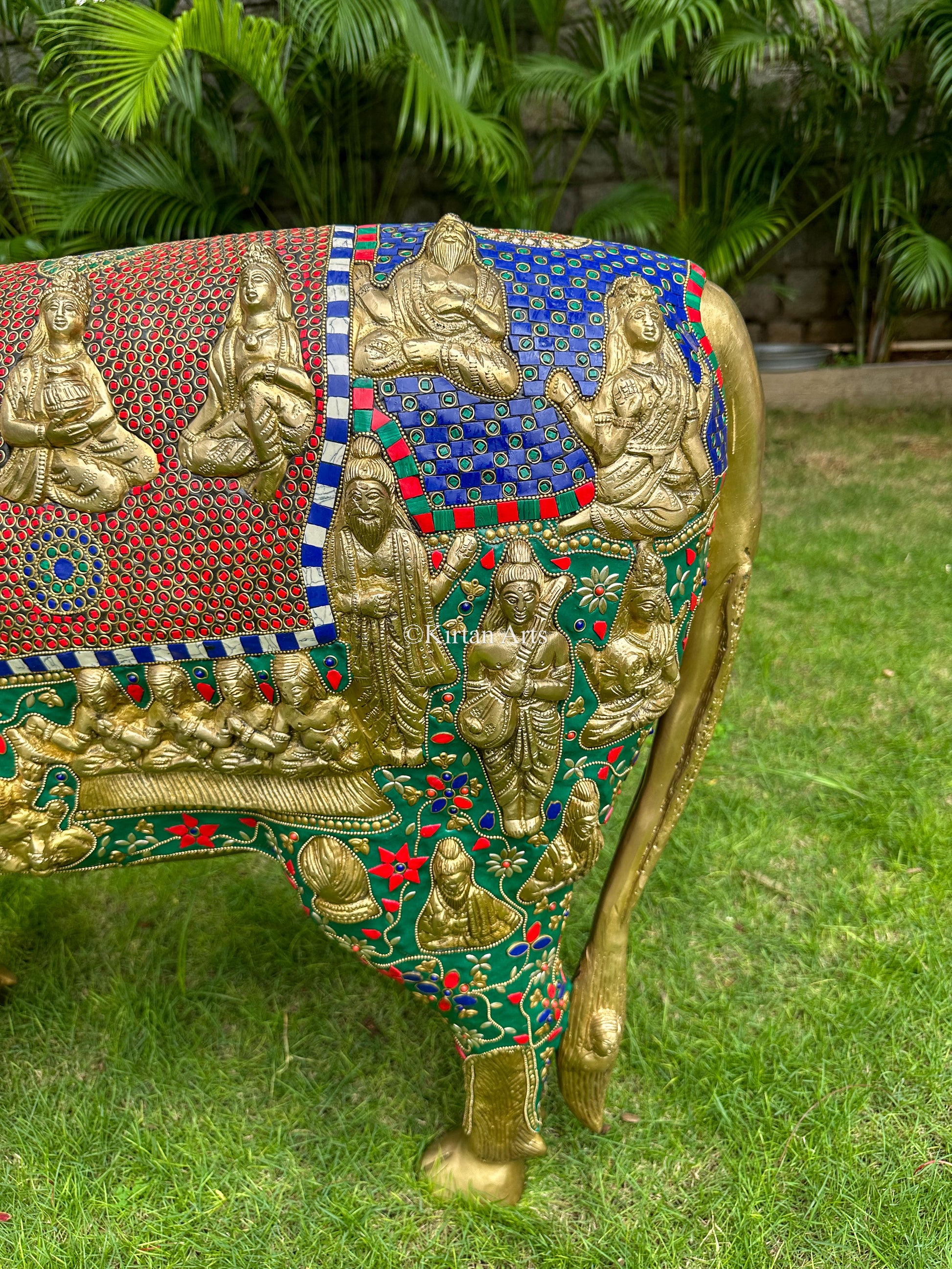 Brass Kamadhenu Cow and Calf | Meenakari work | 3ft