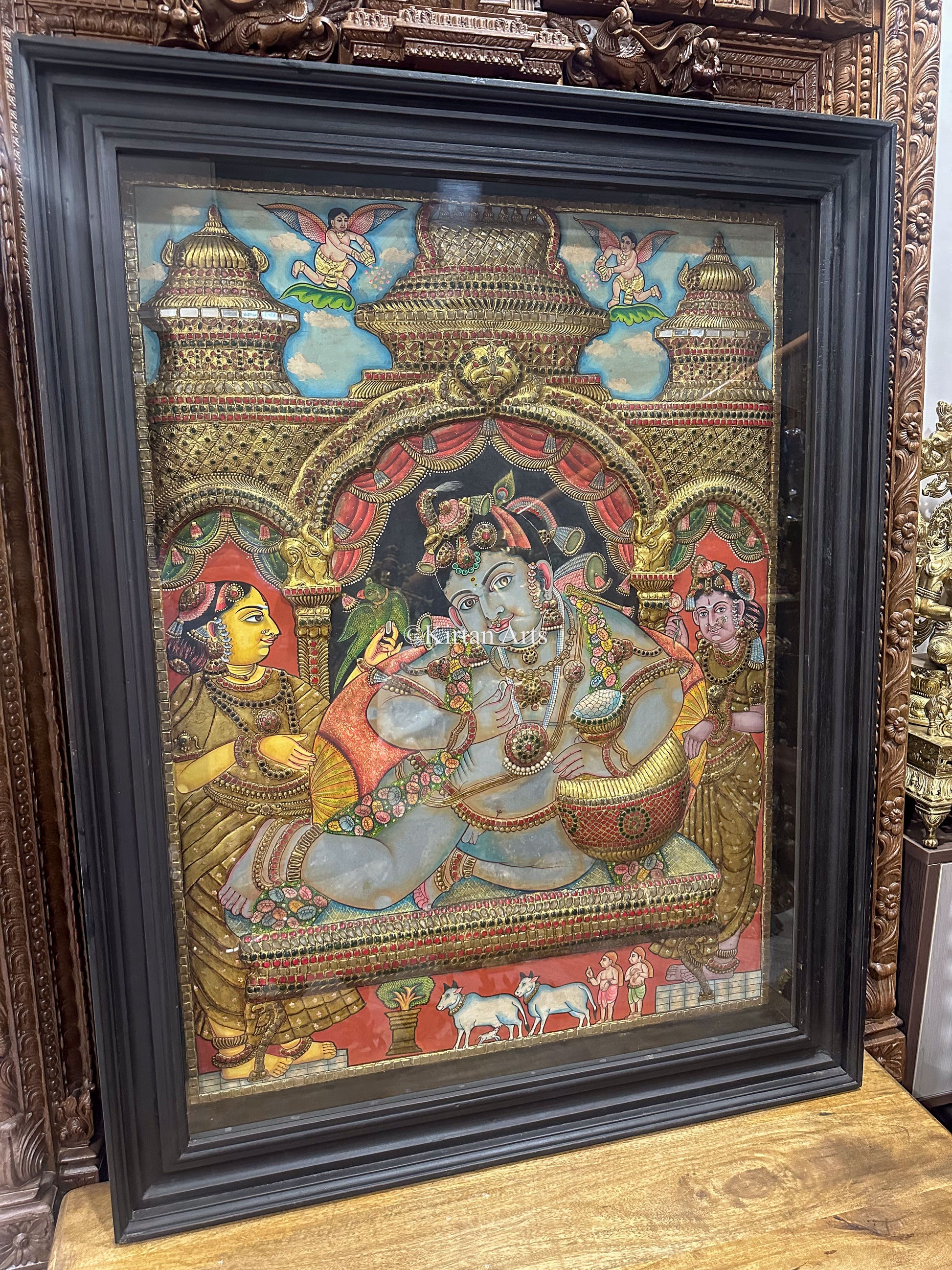 Navaneeta Krishna Tanjore Painting | Antique Finish | 4x3 ft