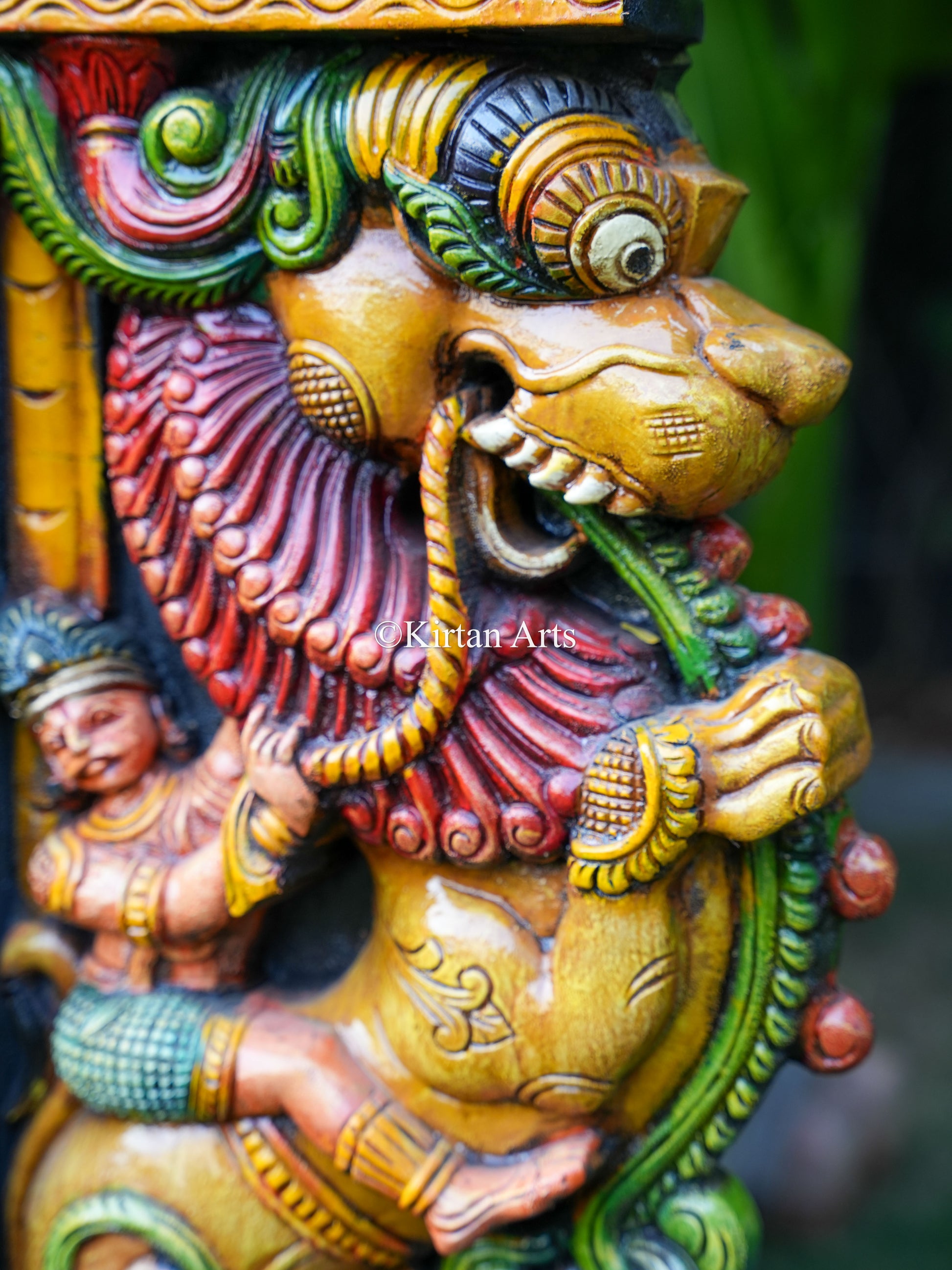 Every detail tells a story, from the protective Yali figures flanking the central image to the sequence of elephants at the base. This stunning piece is not merely decor; it’s a work of art that invokes auspicious energy and spiritual strength in any space.