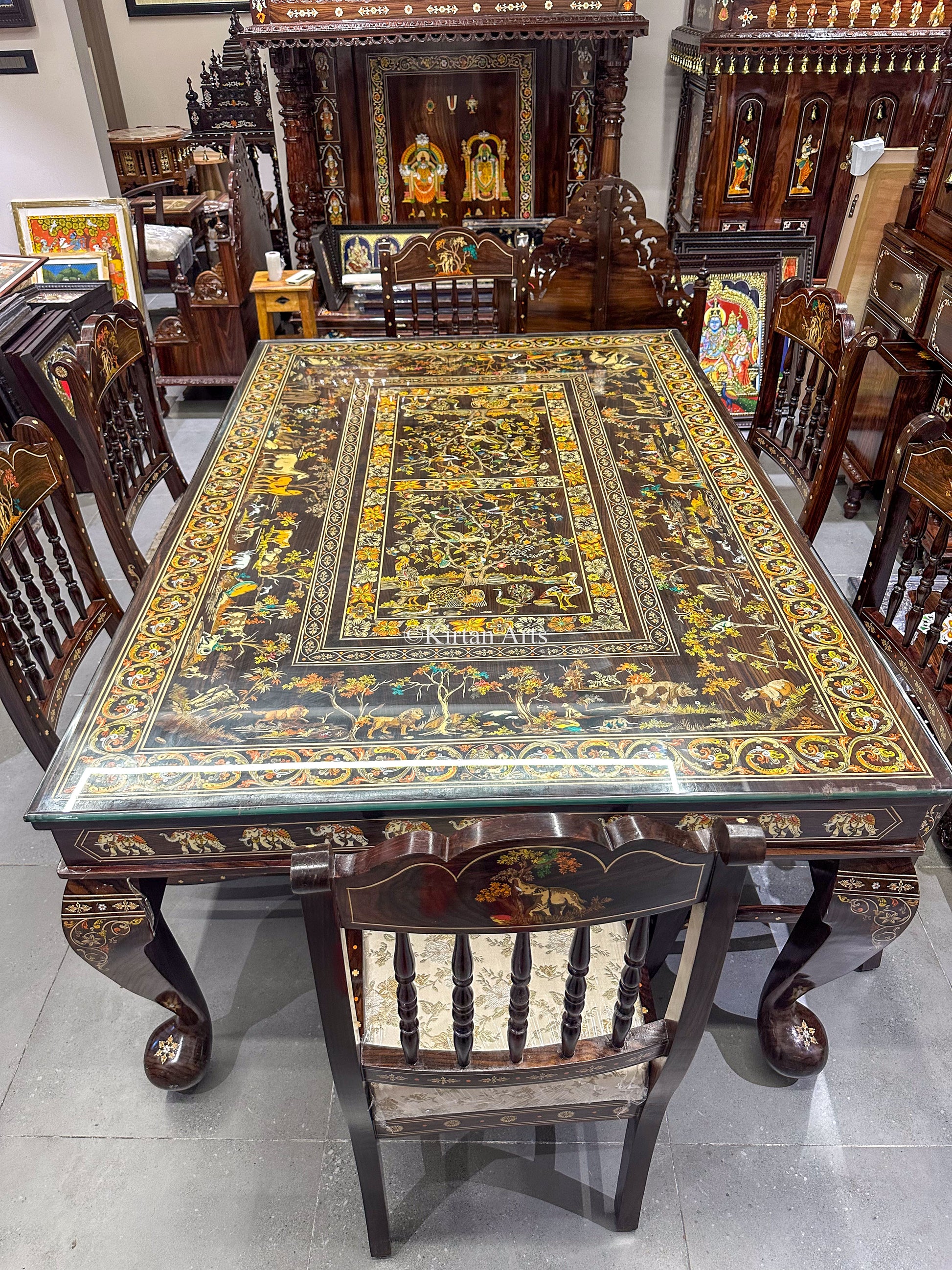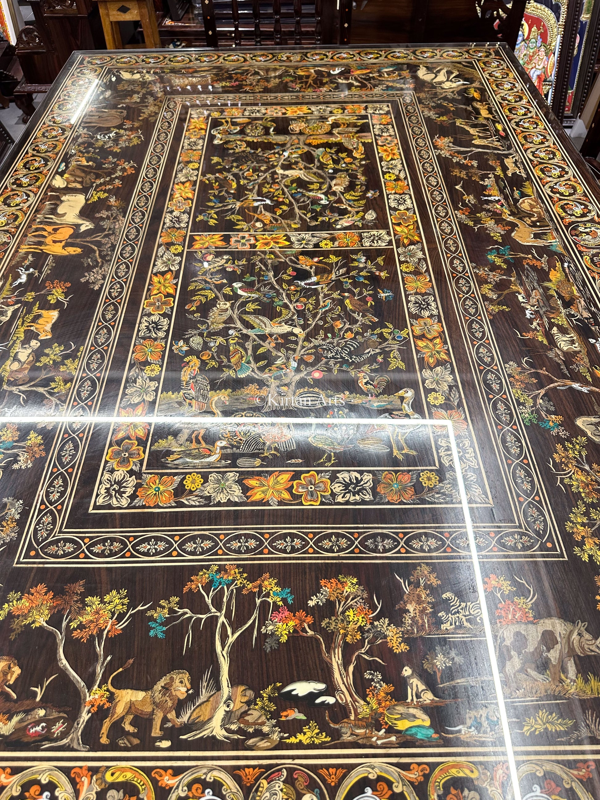 Rosewood Dining 6 Seater Set | Jungle Theme Inlay | 6x4 ft