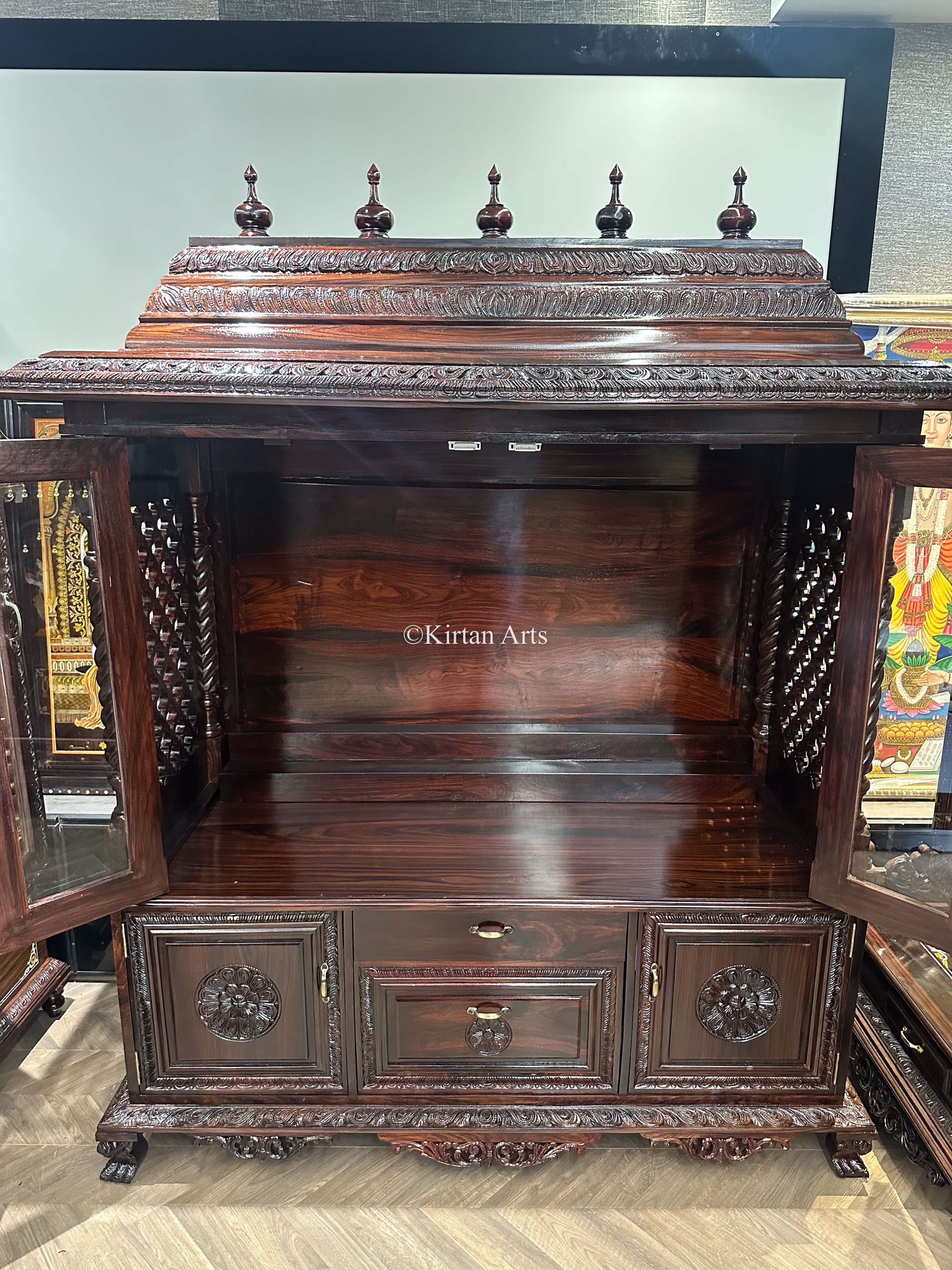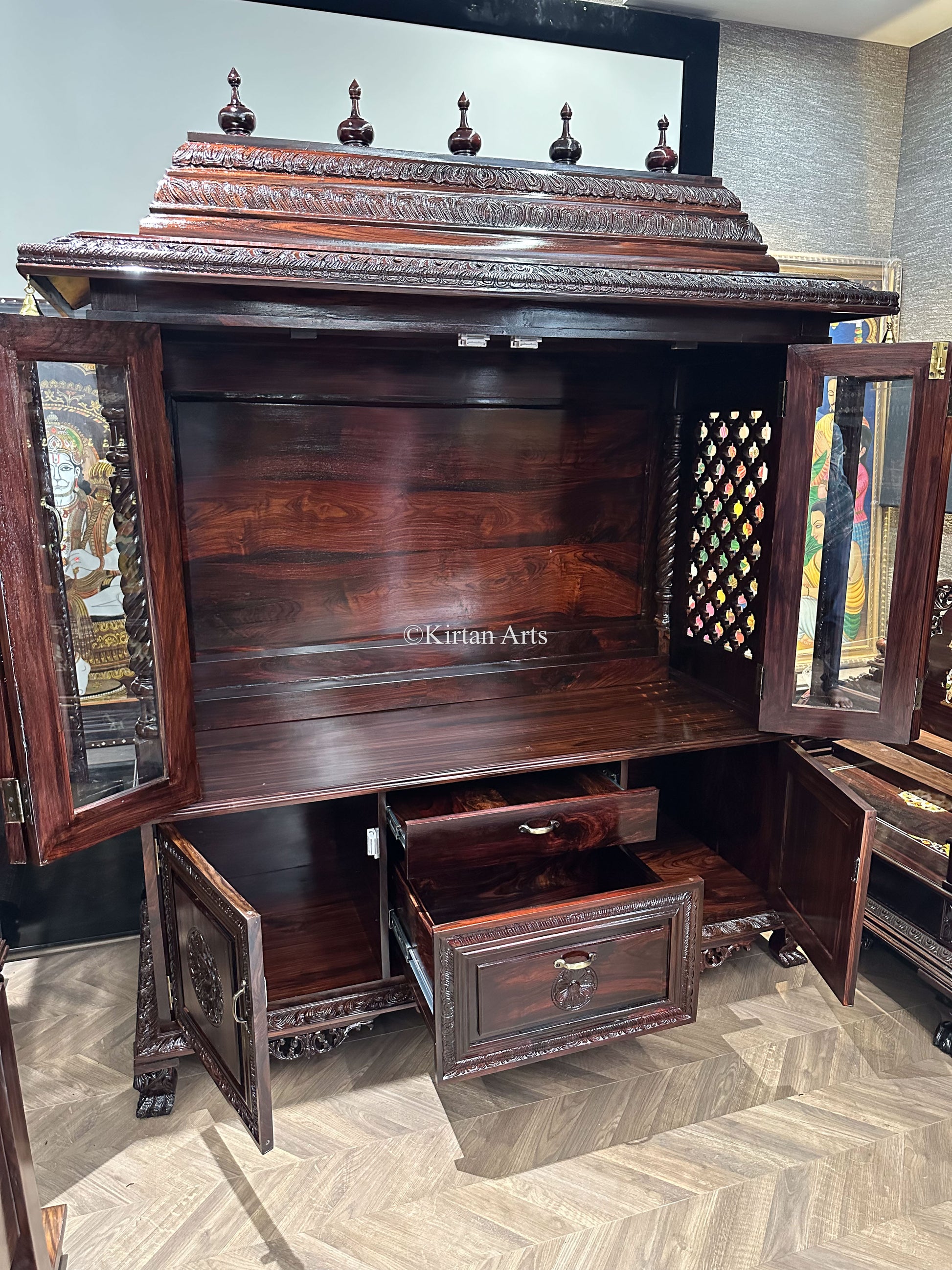 Rosewood Puja Mandir | Glass Doors | Storage | 5ft