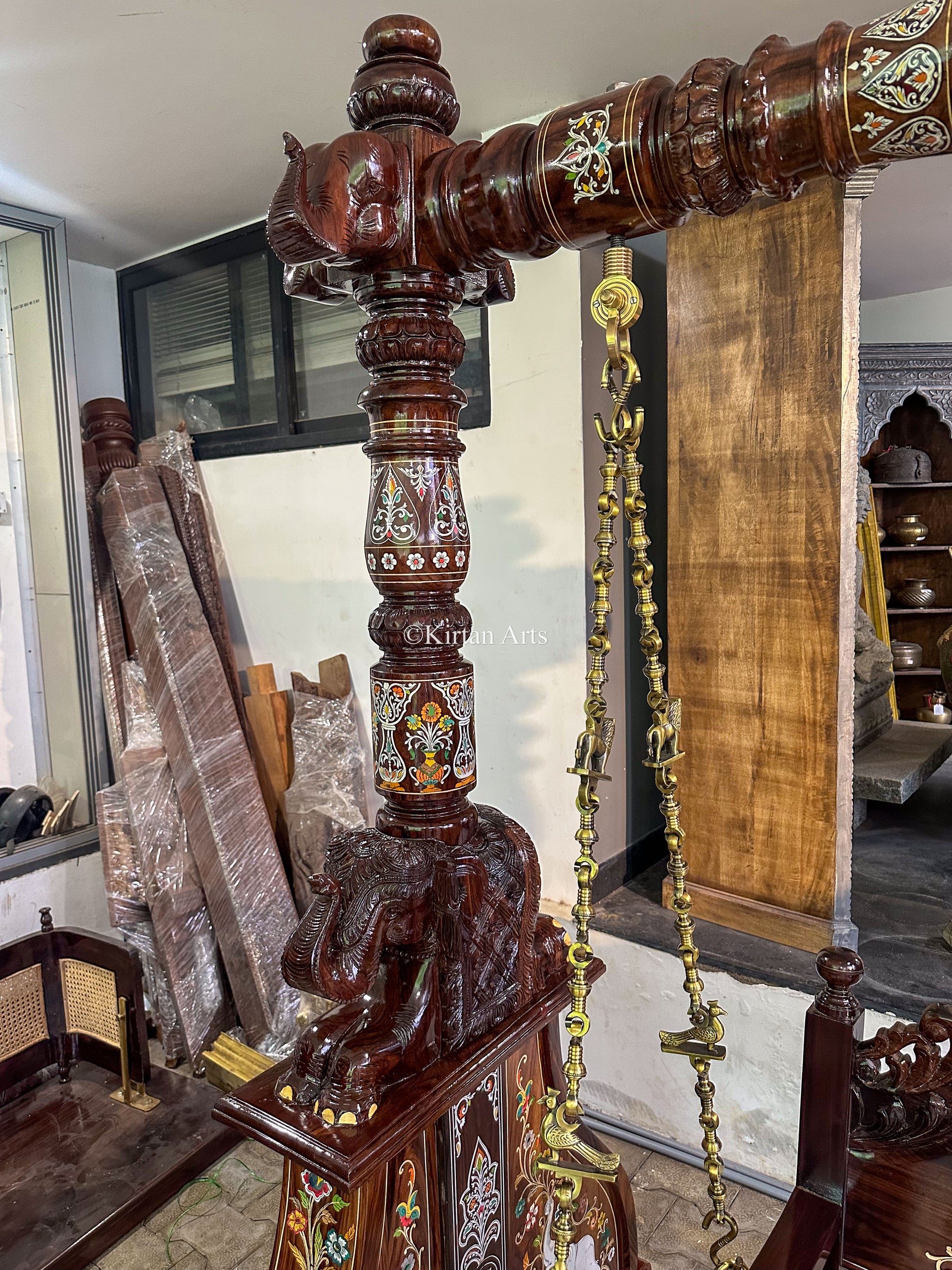 Rosewood Swing/Jhula/ Oonjal | Inlay Work | 7x7 ft | Pillars