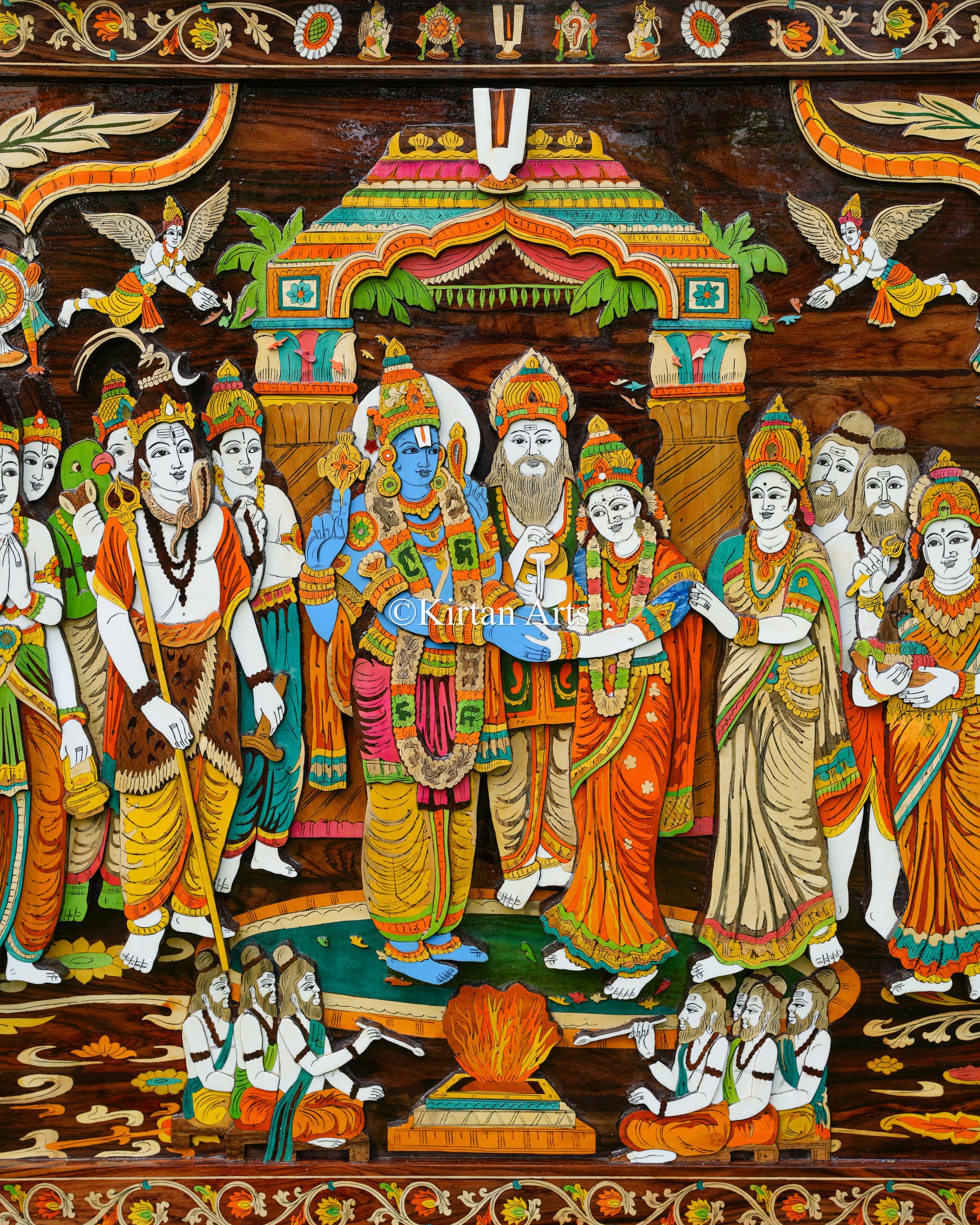 Srinivasa Kalyanam Rosewood Panel | 3D Embossed | 8x4 ft | Floral Inlay