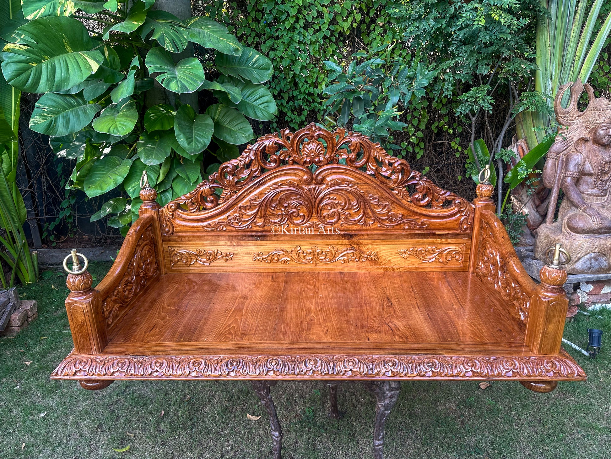Transform your living space with this masterfully carved teakwood jhula, a timeless fusion of artisanal craftsmanship and practical design. Fashioned from premium Indian teak, each swing showcases intricate floral motifs that celebrate traditional aesthetics. The ingeniously designed backrest and side panels disassemble effortlessly, facilitating convenient transport and compact storage without compromising structural integrity. Available in multiple finishes to harmonize with your interior palette, this 5x2 ft sanctuary promises enduring elegance and comfort for generations to come.