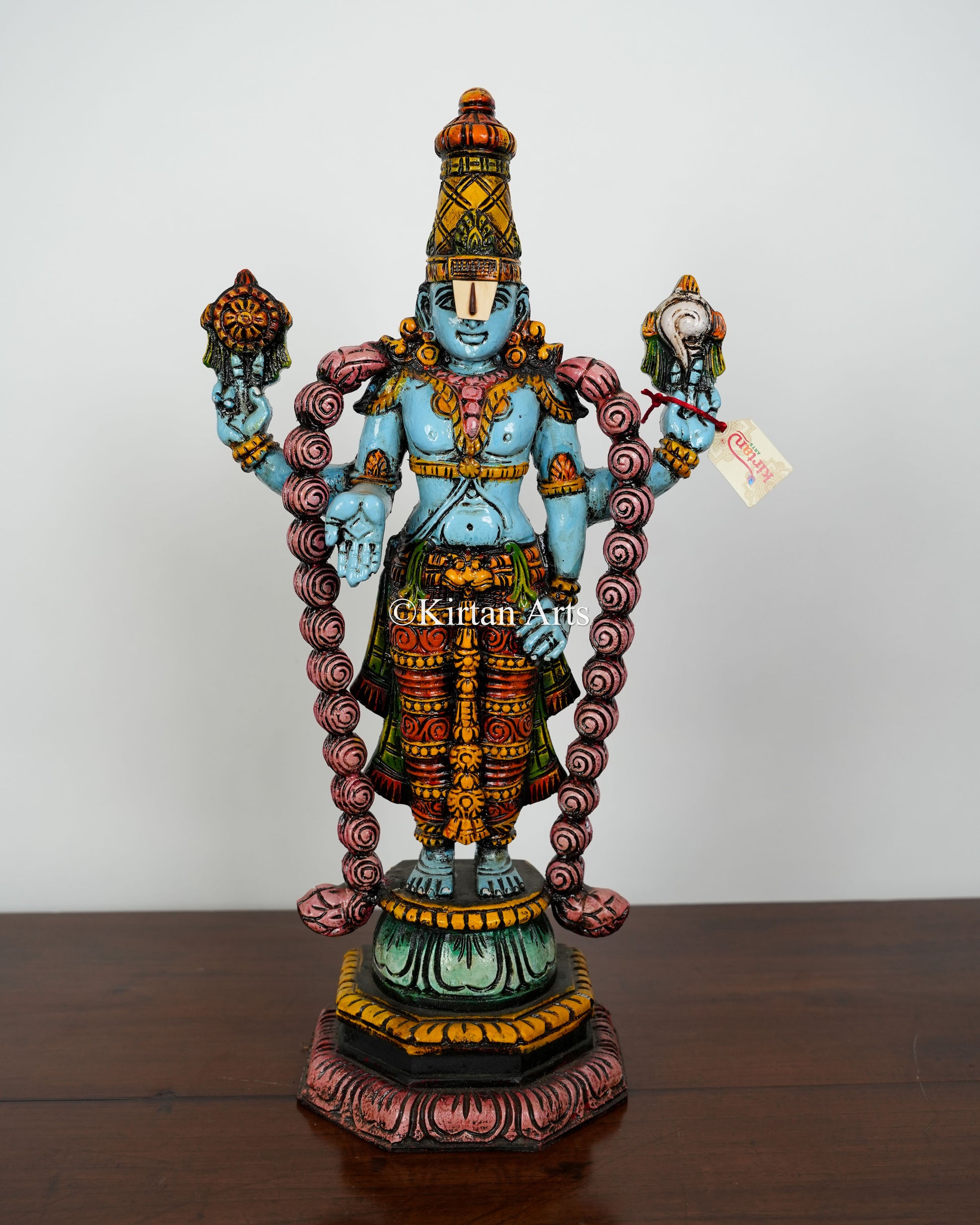 Wood Carved Tirupati Balaji (Kalyana Balaji) Idol | 24" | Distress Finish